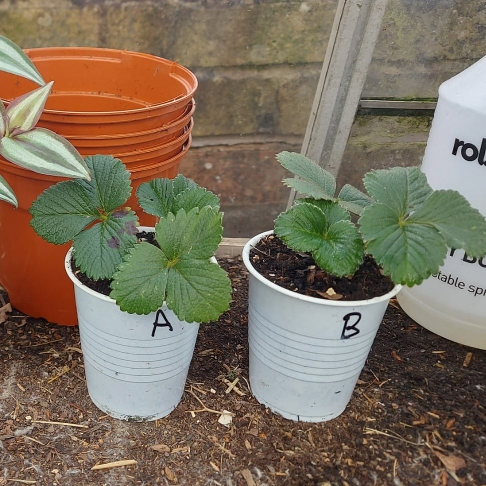 The trial started with four nearly identical plants in small cups. Two plants were planted in Pro-Grow Multi-Purpose Compost and two in the peat based alternative. Throughout the trial the plants grew near enough identically and for the final uproot and pot on, Mick checked upturned the plants to check the root growth.